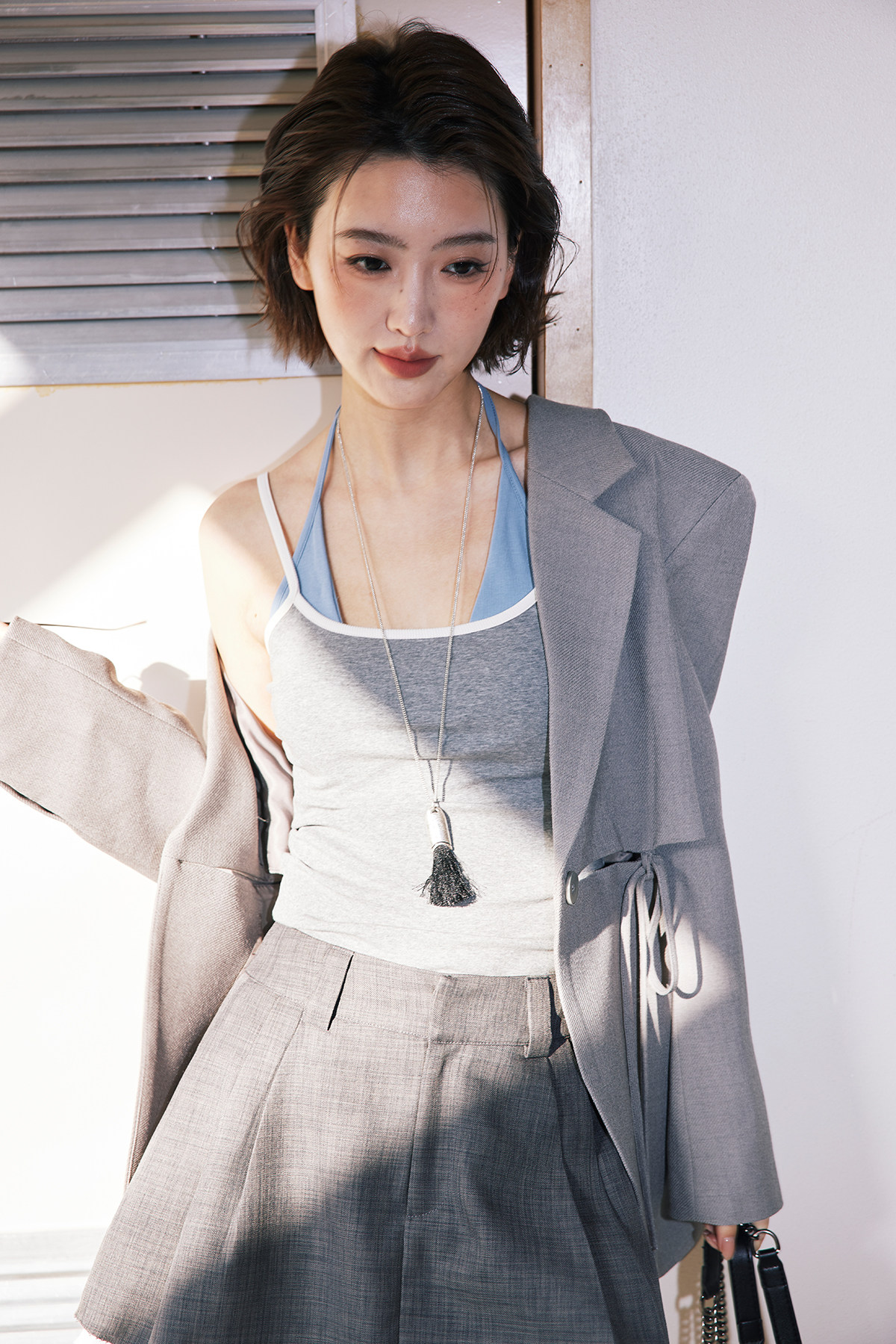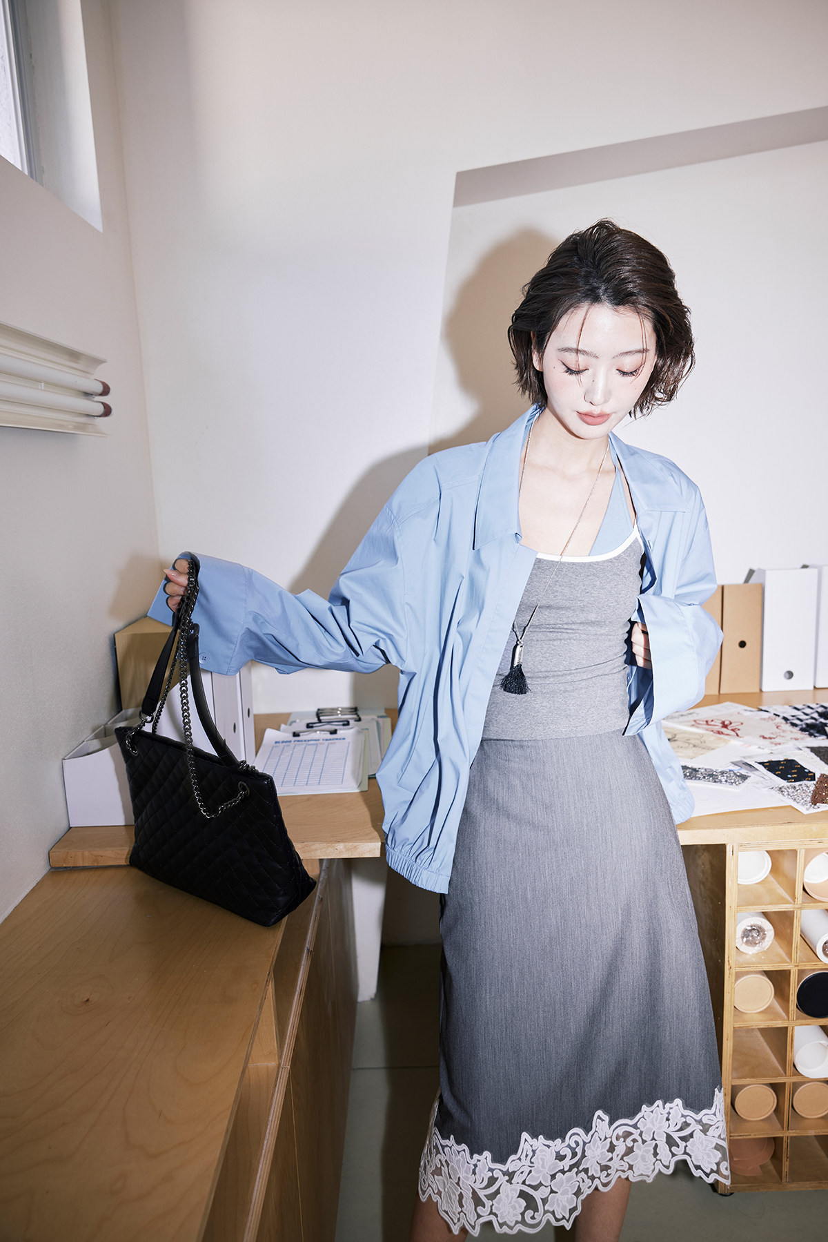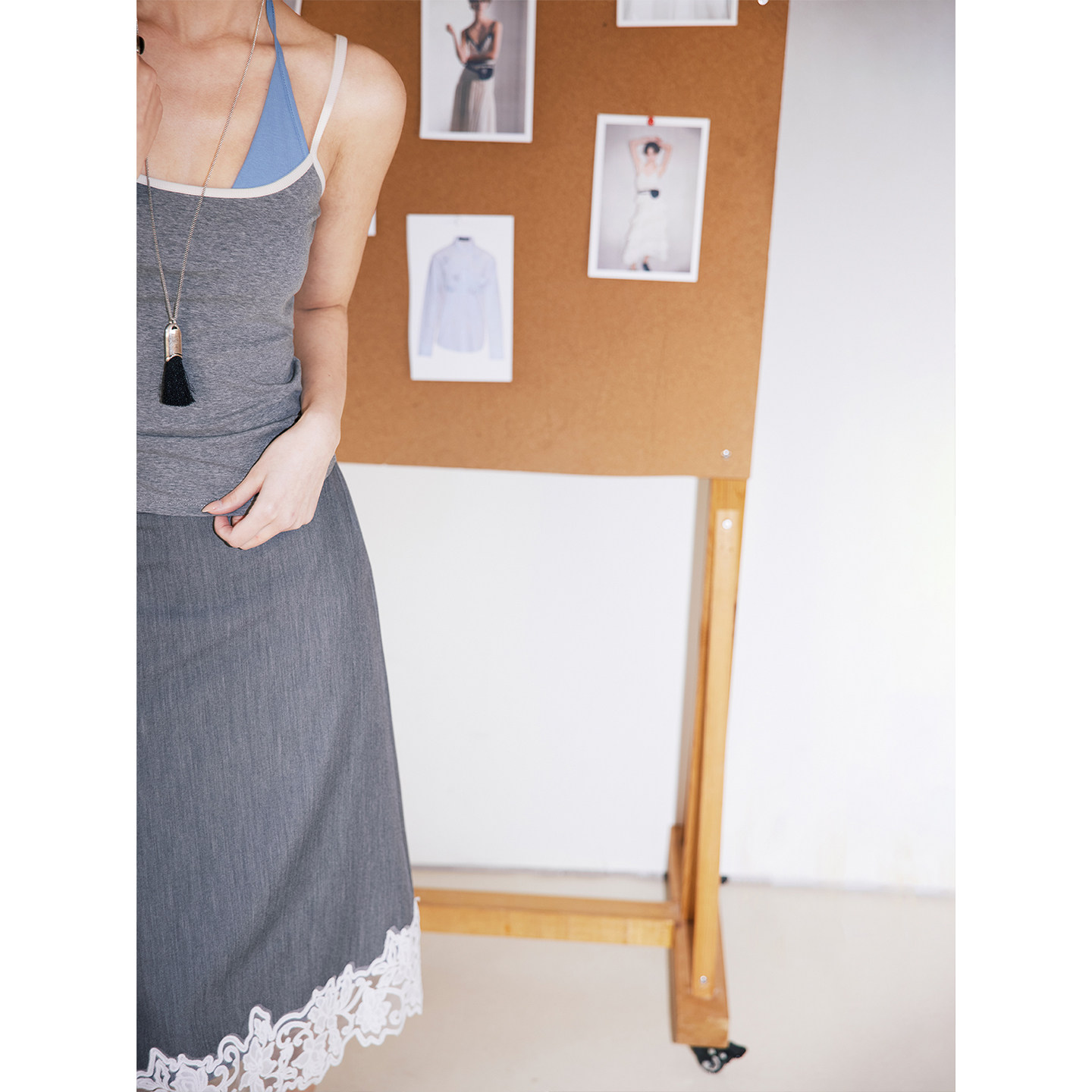 fabric (blue gray): cotton, spandex