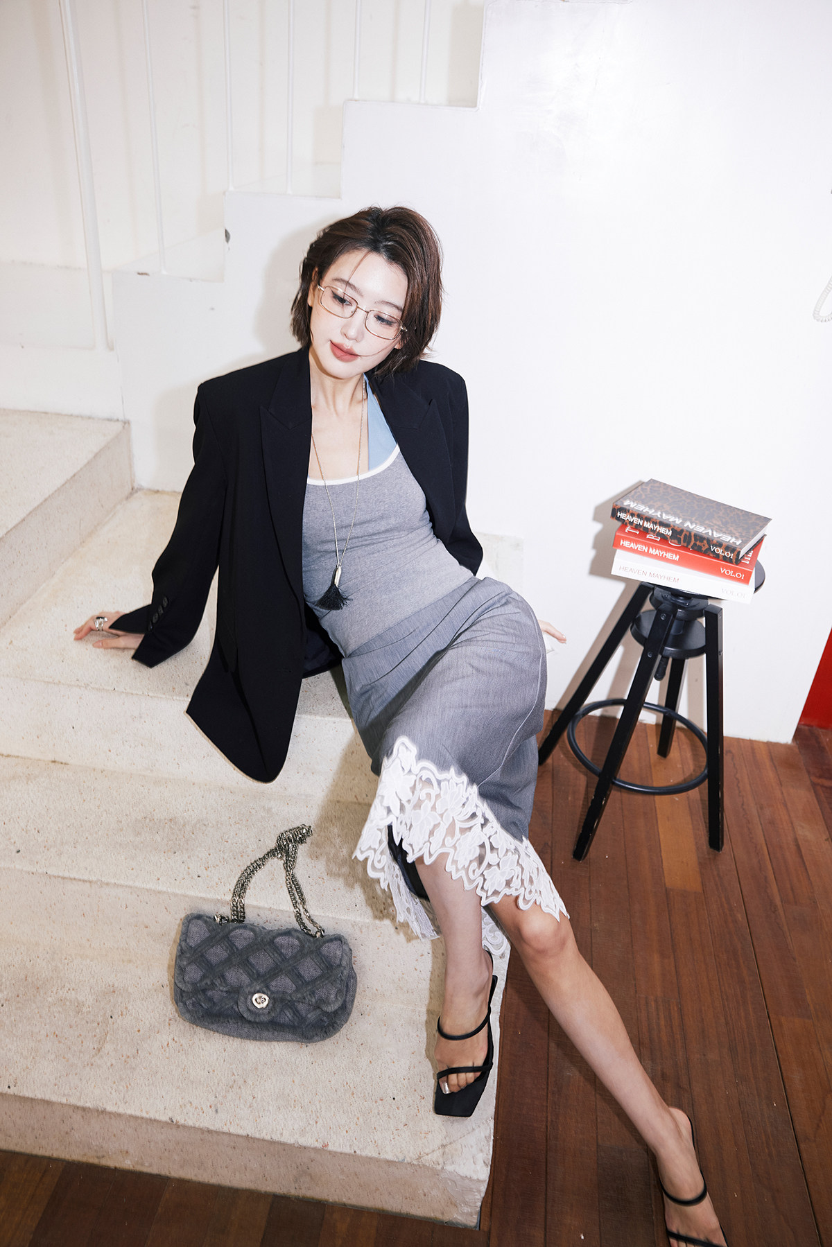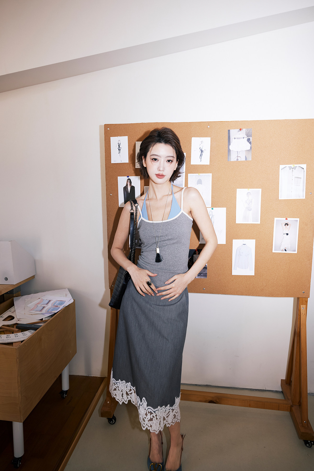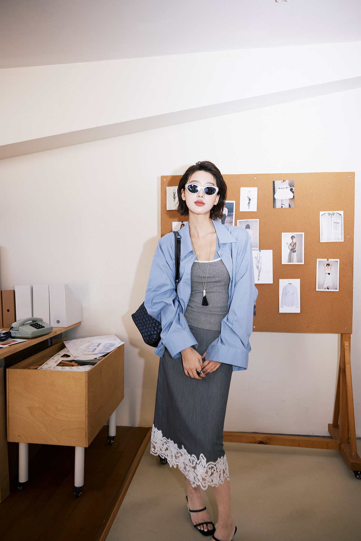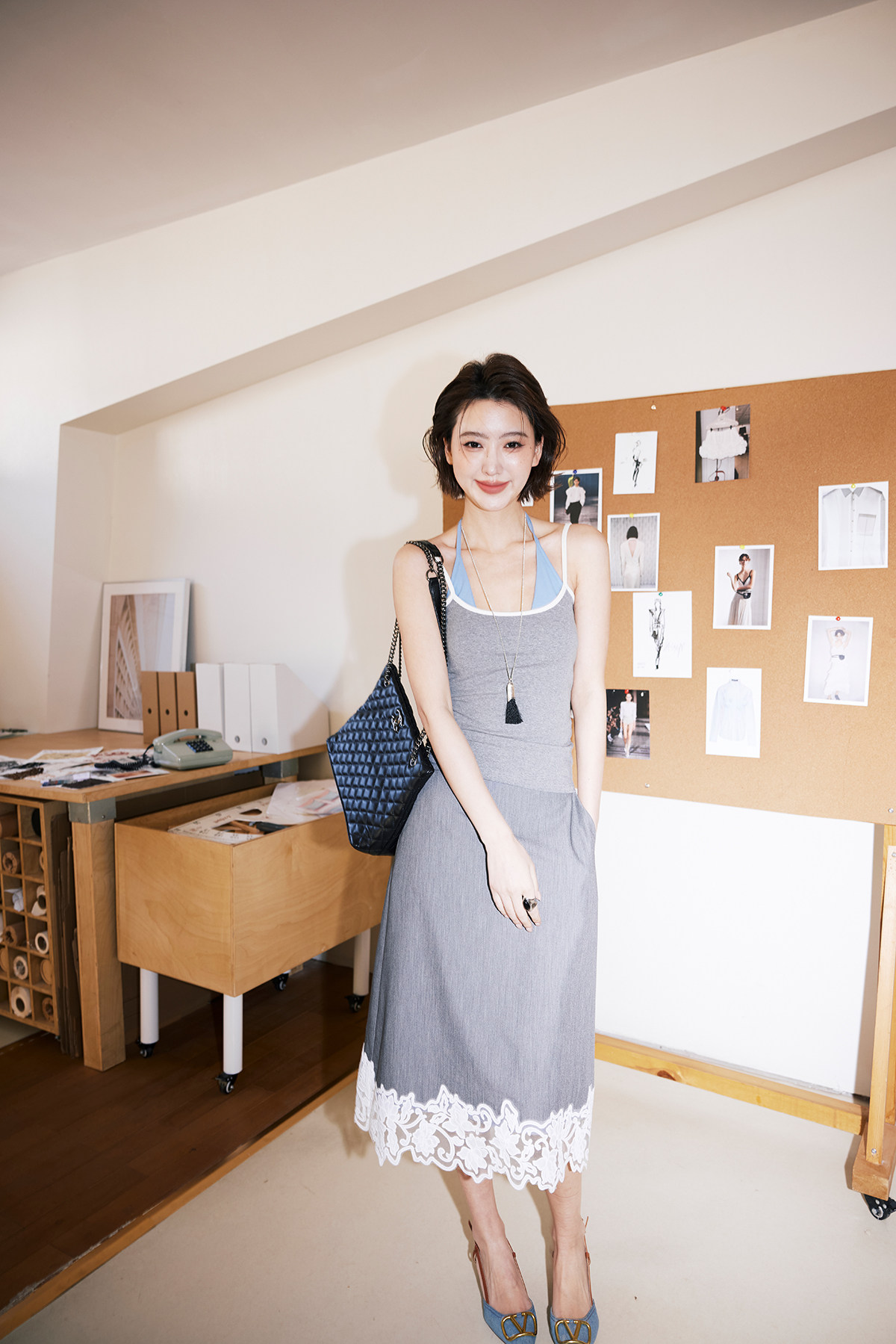 fabric (blue gray): cotton, spandex
